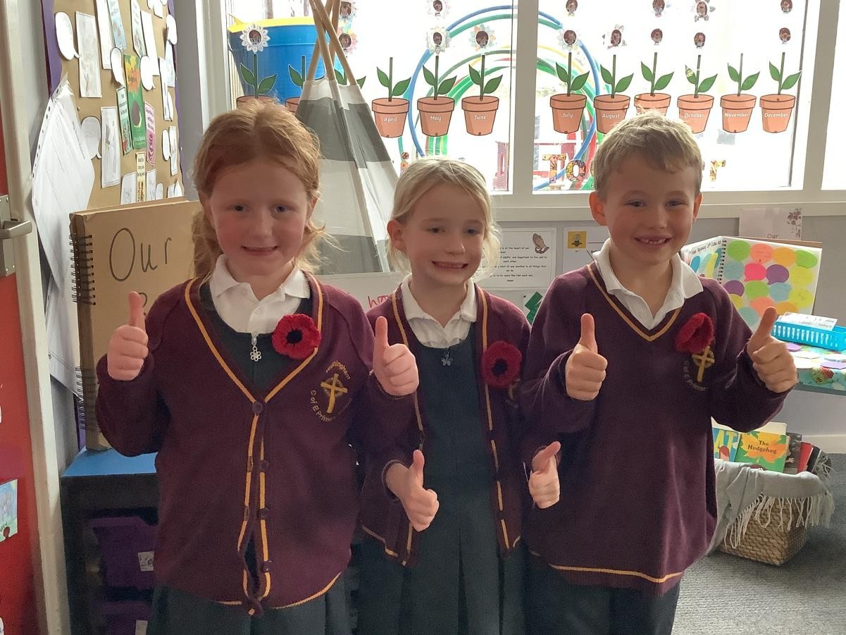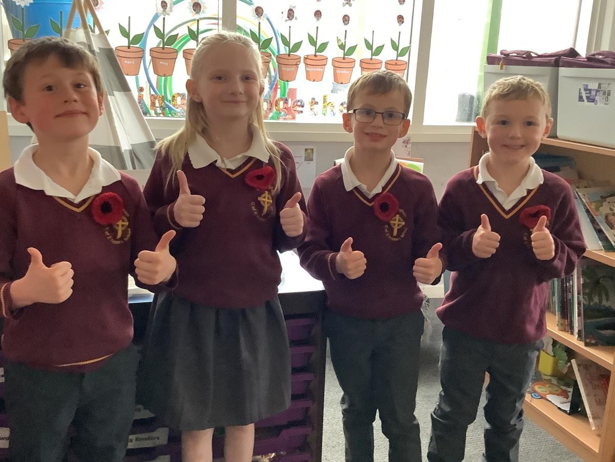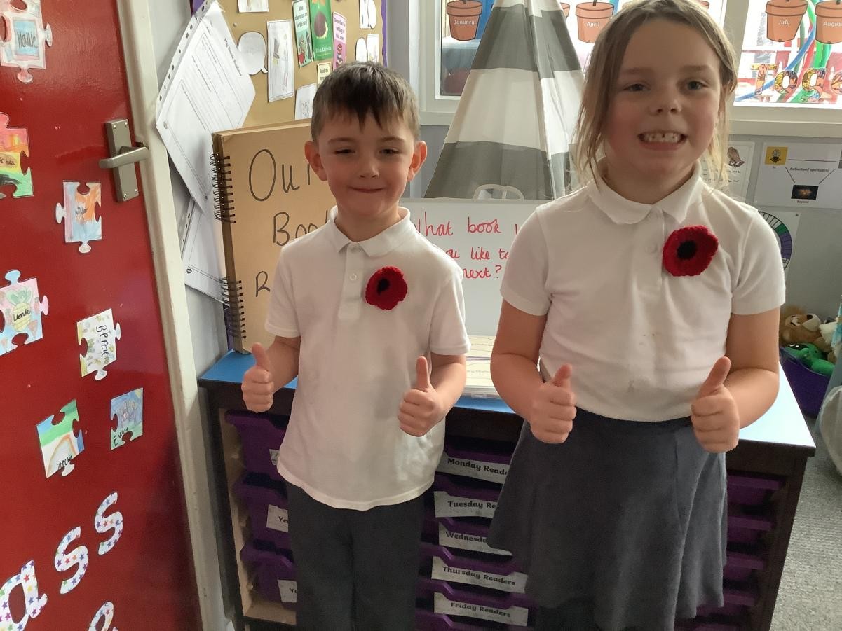 A grandparent has kindly knitted a poppy for each child and member of staff in school for remembrance. Thank you!